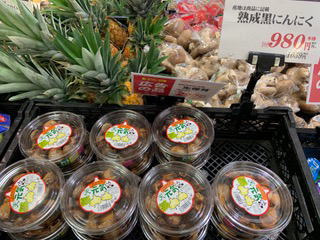 なんと黒ニンニクが300gでこの値段。 結構売れているが、味が悪いという評判。 お店では、桃の大行進。秋の季節感。パイナップルの特売。と秋らしさが迫っている。