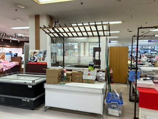9月に入り、店内は秋の装飾が目立つようになった。 巨峰、梨、青切りみかんなどフルーツも季節感を感じさせる陳列になっている。