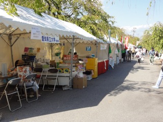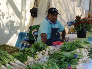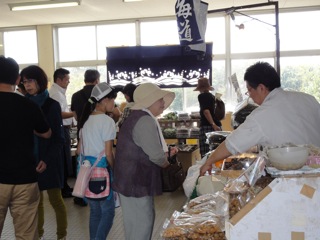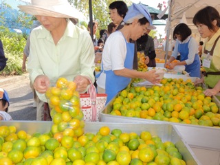 愛媛みかんの袋入れ放題:500円公園内で収穫された野菜の即売。