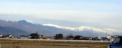 北塩尻インター付近より朝7時40分撮影。穂高岳より白馬岳を望む。