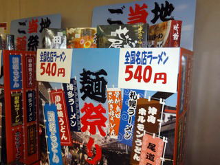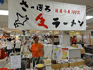 『あずみ屋』の附田さんが担当した。JAの平田さんが販売するコーナーには、珍しいラーメンがいろいろ揃えられた。