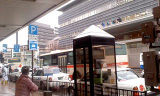 雪の中で演説する民主党党首:海江田万里氏と