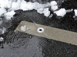 金沢の路地には、融雪のための水道が設置されていて、この時期に威力を発揮する。