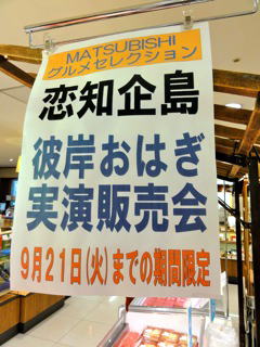 今週はお彼岸で、和菓子の中でもお供えにする 『おはぎ』が人気であった 時節柄、栗おはぎも店頭に並んだ。 地下では、どんべいさんがお好み焼きを実演で提供していた。 私としては、『ねぎ焼』が大好きである。