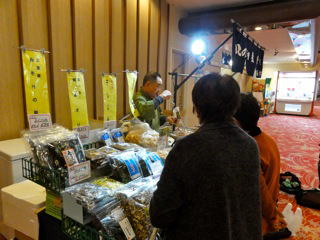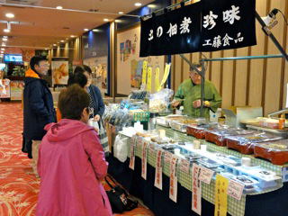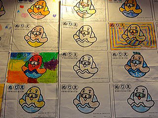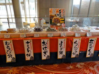 親子連れで来る 子供向けに塗り絵が配られ、 上手な人が張り出されていた。 中にはちょっとまね出来ないくらい 上手な絵が2〜3点見受けられた。 今回は、ほとんど生菓子中心で展開した。 初物のせいか、『さくら餅』が人気を呼んだ。 同時開催で『工藤食品』さんが並んだ。