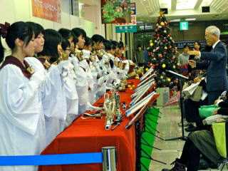 金沢へ行ったらかならず注文する、 「ぶりかま」。絶品です。 今回はじめて購入した地元の漬物。 とろ〜りとした食感で、ごはんがすすんだ。 地元、能登の麦焼酎。 コクがあっておいしい。 12月ということもあり、 地元の北陸学院高校の ハンドベルクワイアが公開上演された。