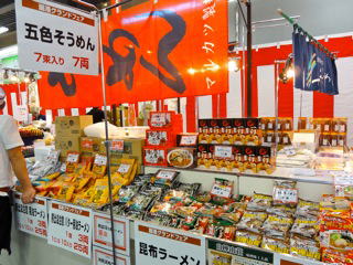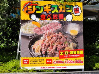 引っ越ししてきた『風船こーなー』。『ジンギスカン食べ放題』は今年から初オープンした、長島温泉直営のイベントだ。