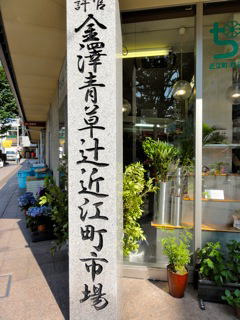 『それ、聞こうと思うて、今日買いに来たんよ〜』。『辰巳用水』のマンフォールを近江町市場内で探索の結果、発見。
