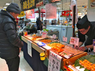 新潟の栃尾揚げを久しぶりに久池商店が担当 宇都宮いさみやさんのコーナー 水野商店さんが五平餅の実演で初登場 今週は雪のために集客が激減、売り上げに大きく影響を与えた。 特に、2日目、3日目、4日目とほぼ毎日、降雪に悩まされた週展開になった。