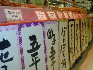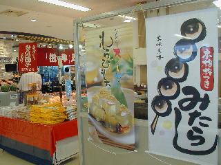 のれんは「みたらし」と「五平餅」を揃えて展示。意外と珍しいパ ターン。