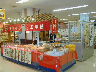 先週から丸八製菓から贈られて来た新装なった販促品が顧客を迎えている。