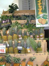 エントランスはこの時期にぴったりの果物屋さんのパイナップルが並ぶ。