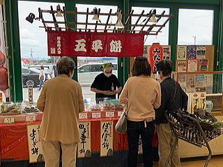 わらじ五平餅の販売 午前9時開店だが、11時位からお客様がつく。 最終的に販売を終了するのはいつも19時くらいになる。
