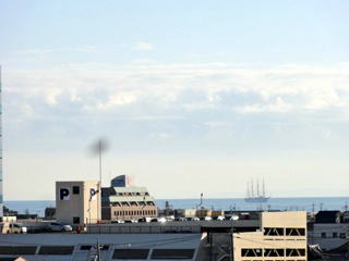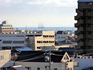 この催事の期間中に津の港付近には日本丸が停泊していた。