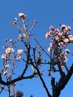 ほぼ夕方には売り切れる人気のパンだ。この時期に、庭にある白梅が咲き始めた。 紅梅はやや遅れて咲き始めた。