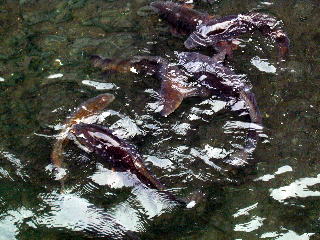 運河の中にはとてもおおきな(約80センチくらい)黒や赤の鯉が泳いでいるのが印象的であった。