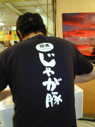 こちら『味商』さんの取り扱う、 『山下水産』は遠慮深く、小さめの文字がかえって目立つ。佃善の『じゃが豚』は、