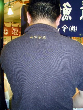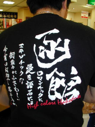 Tシャツではないところが老舗の感じを出す。函館『布目』の伊井 成さんは毎日違うTシャツでアッピール。 何故か黒地が多いTシャツのユニフォームだが、