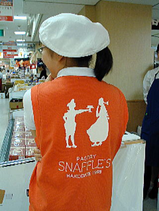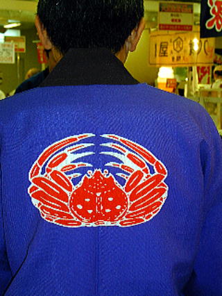 特徴はふくろう。テイネフーズは帆立貝柱の専門店。黒地に金文字が輝いてまぶしい。 こちらはご存知『かに本家』さんのユニフォーム。