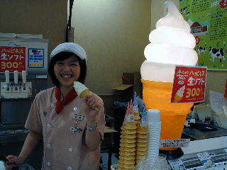 かつまた幅広く取り扱っている。こちらは生乳で作ったソフトクリームが売りの『ハッピネスデーリー』さん。 毎年、北海道物産展では、洋菓子の会社の進出と売上げ増進が特にこの10年ほど
