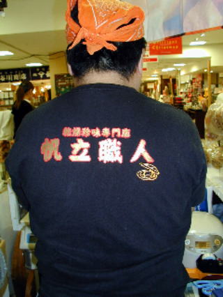 百貨店担当者の頭痛の種であった。コチラの会社は三種類のTシャツで毎日、着せ替え人形のように違うシャツで営業していた。 この店は今年初登場のにぎり寿司のお店 こちらは木彫り作品のお店。