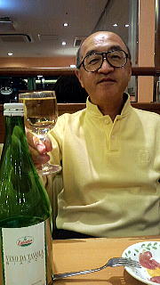 二人でこの白ワインの一升瓶をほぼカラにした。