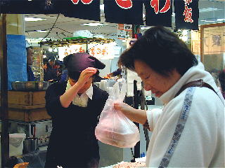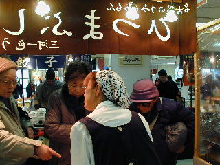塩、味噌、醤油の三点を試食販売で展開。