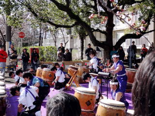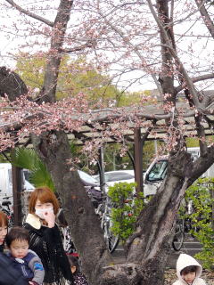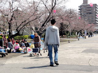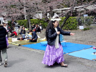 『恋知企島』のテント。桜の花はほとんど咲いていないが、