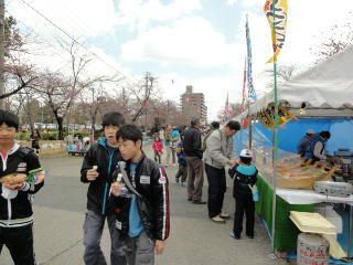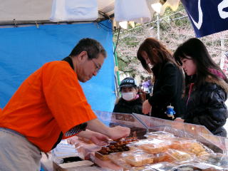 森さん、武田さんのお二人。3/31は、雨降りで売り上げも今一であった。