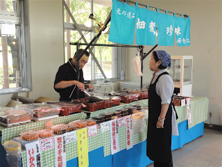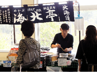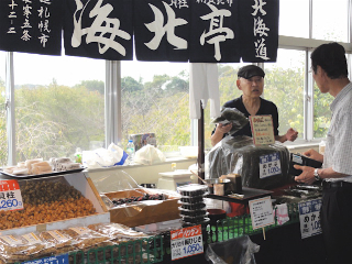 カネシマ園がプリン 北友物産が乾燥珍味、貝柱、昆布など 会場の付近には