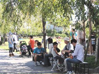 芸を指導するコーチさんもいて、秋の青空の下、家族で雰囲気を楽しむ姿が見られた。