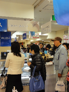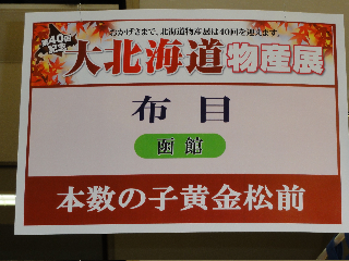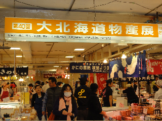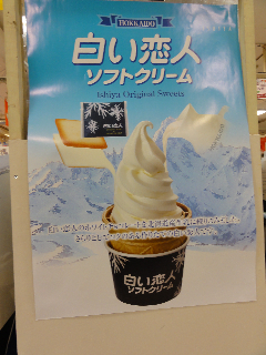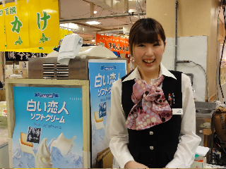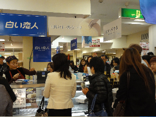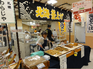 北海道物産展今年の新顔は「白い恋人」のソフトクリーム。 珍味屋さんが4軒揃った。「布目」、「恋知企島」、「長谷川」、「味商」。