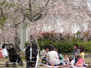 この公園では3月にしだれ梅が、4月初めにソメイヨシノが、
