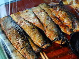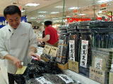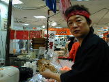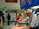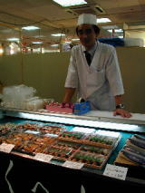 とてもおおきな穴子すし、さば棒すしを実演販売。一口ではとても食べきれないサイズが自慢。