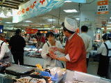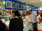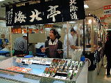 新鮮な北海珍味や魚卵、明太子といった食材を売り場いっぱいに陳列、即売する。