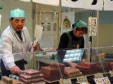 「虎屋ういろ」は三重県からの出展。当日入荷したばかりのういろを凧糸のようなもので切り分けて販売する。出来立てなのでとてもソフトな口当たり。この日の特製品は何と言っても、バレンタインういろ。ハートの形が憎いね。