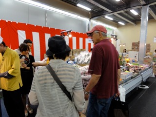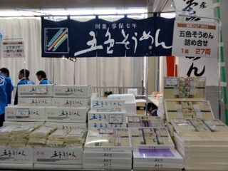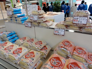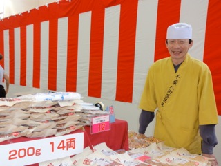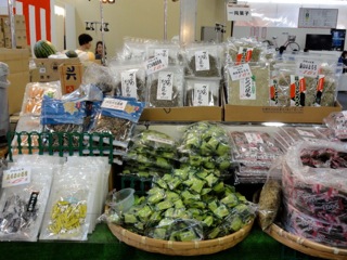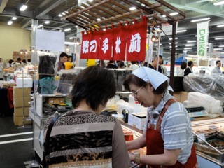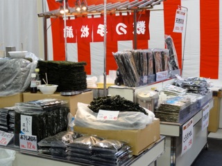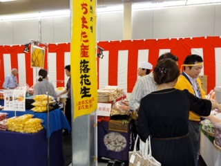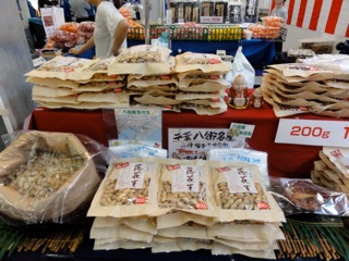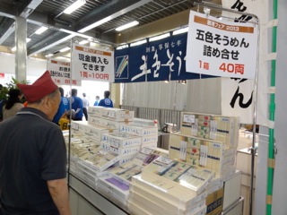 今年は『北郷』さんが出店されず 代わりに『カネシマ園』さんの「プリン」。 『丸秀商店』さんの「千葉産落花生」。 『海花』さんの「海藻・昆布」。 『北友物産』さんの「北海乾燥珍味・さきいか」、などが登場した。 他に、当社と問孫さん、直営の1両菓子で構成された。