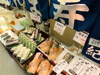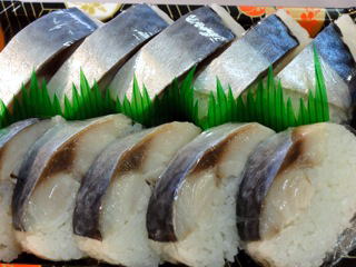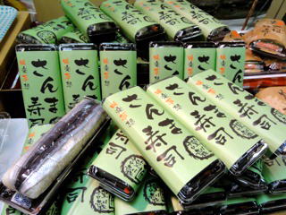 和歌山新宮のさんま寿司、焼さば寿司、の他、新兵衛屋のじゃこ天、