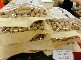 千葉産落花生の『丸秀商店』は、さや付き落花生など国産品の味をアッピール。